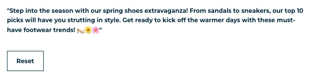 caption generator result saying "step into the season with our spring shoes extravaganza! From sandals to sneakers, our top 10 picks will have you strutting in style. Get ready to kick off the warmer days with these must-have footwear trends!"